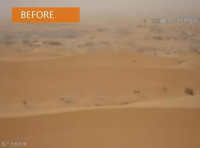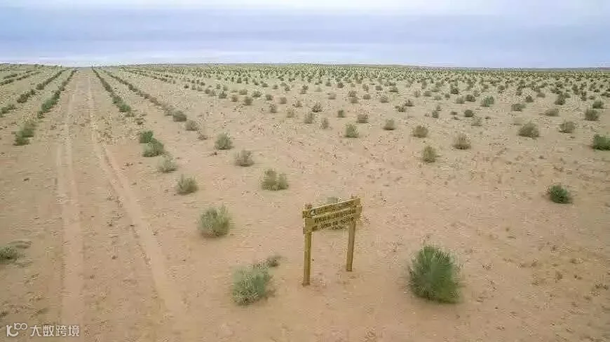 世界治沙史奇迹——草方格固沙法,将沙漠构成微型防护带环环相扣,连成一片,涵养水分。