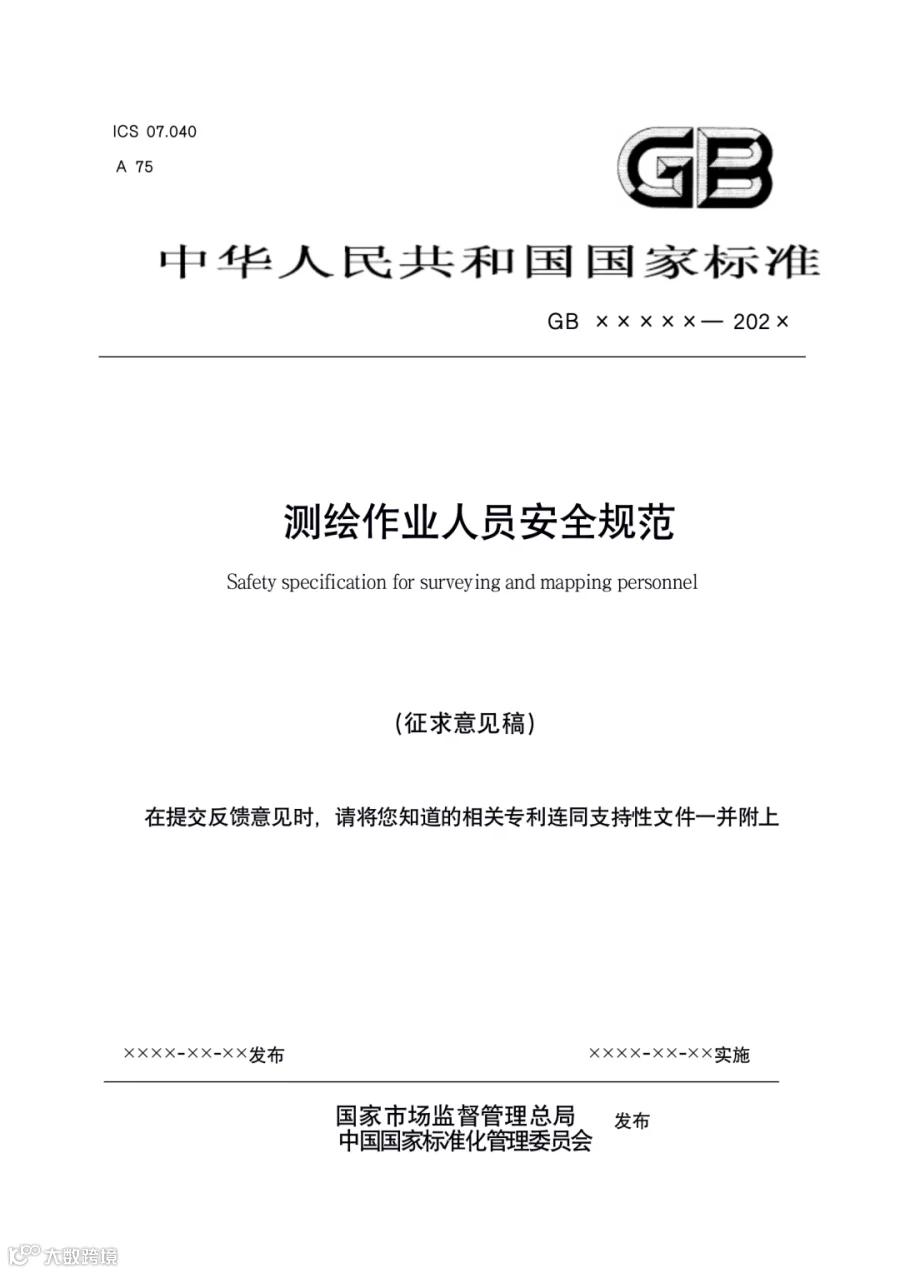 关于强制性国家标准《测绘作业人员安全规范(征求意见稿)》的公示