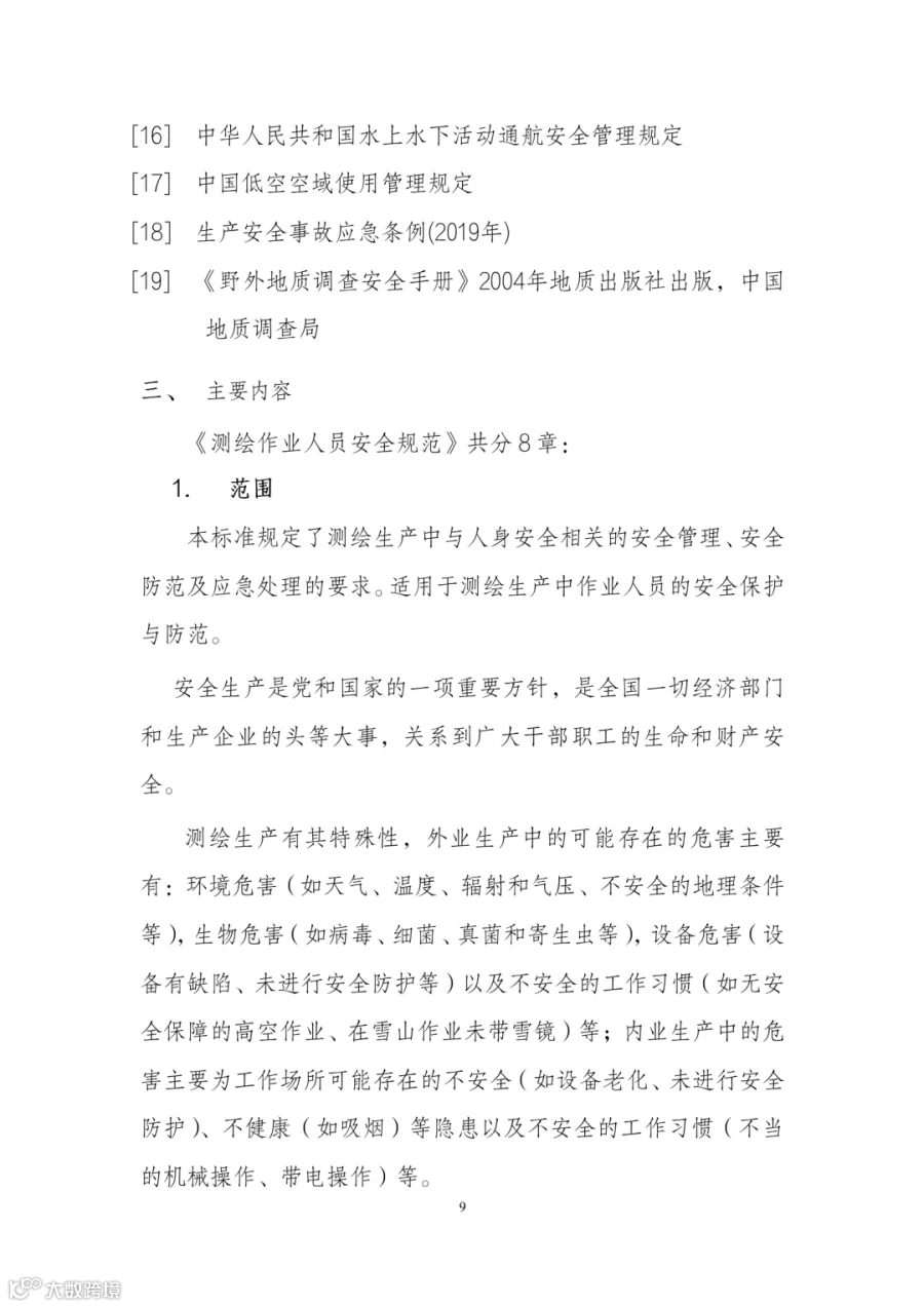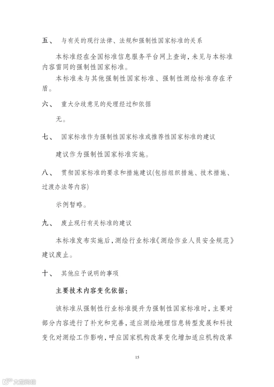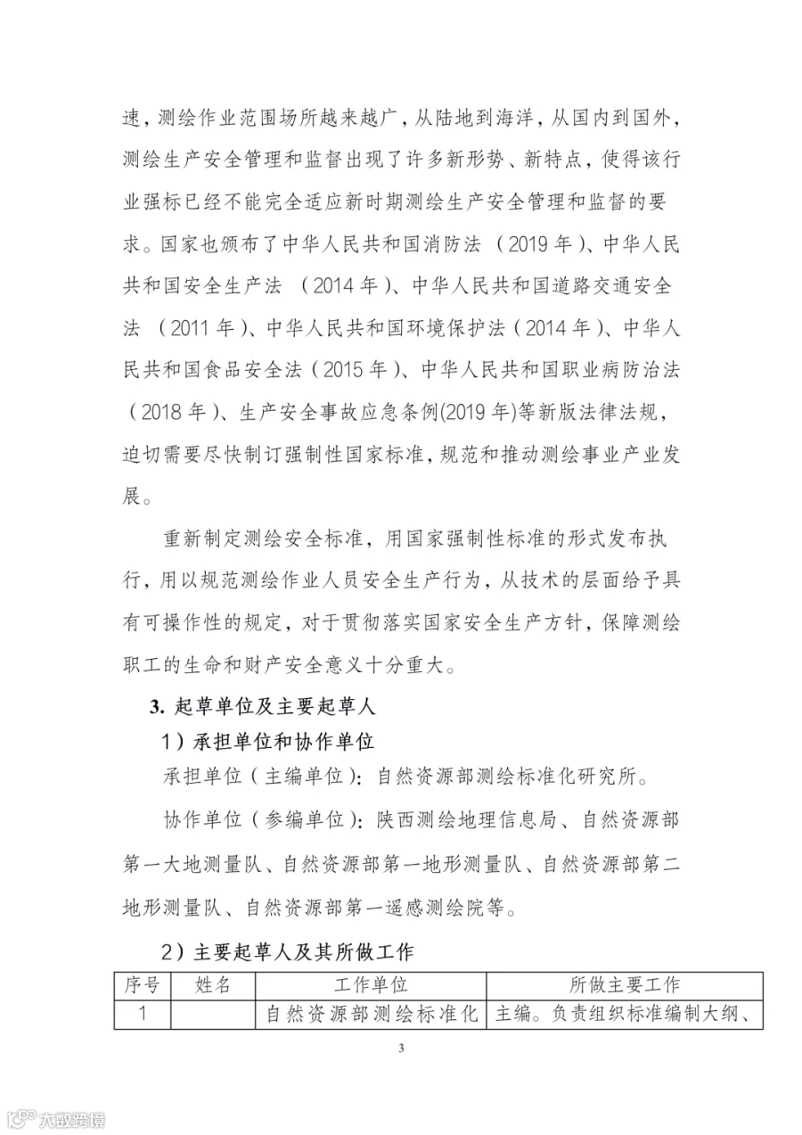 自然资源部近日发布了关于强制性国家标准《测绘作业人员安全规范(征求意见稿)》的公示,内容如下: