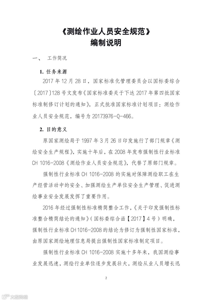 广州精测信息科技有限公司自然资源部近日发布了关于强制性国家标准《测绘作业人员安全规范(征求意见稿)》的公示,内容如下:
