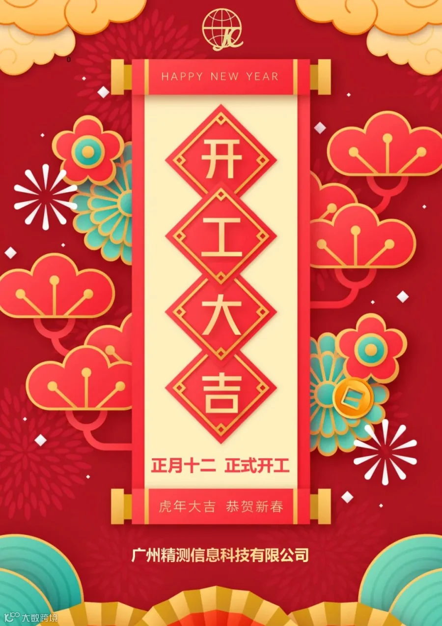 导读:开工大吉,大吉大利!广州精测全体员工已蓄势待命迎接新的使命。恭祝大家工作顺遂!事事如意!
