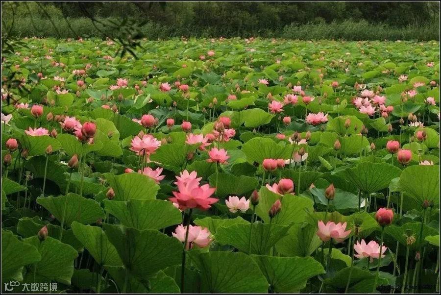 莲塘村的数百亩荷花开了,
