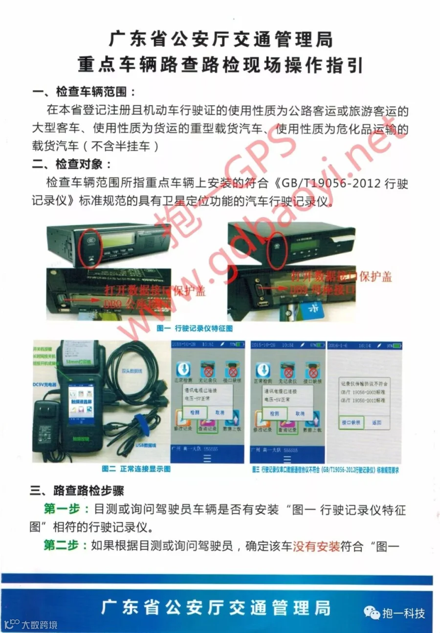 为保障出行交通安全,广东各市交警持续加强对公路客运、旅游客运、危化品、校车、重型货车等重点车辆的查处力度,着重对重点车辆未按规定安装、使用卫星定位汽车行驶记录仪的违法行为进行查处。