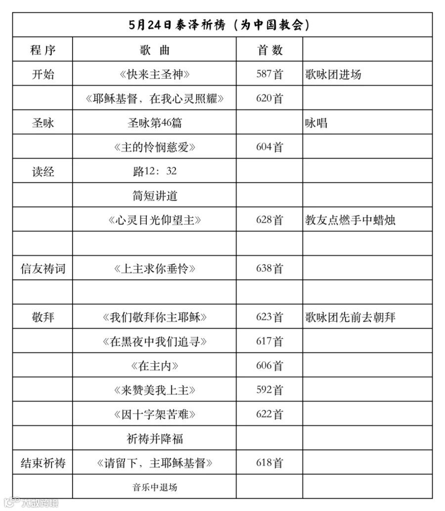 弥撒时间:每周日九点大礼弥撒(在唱经楼颂唱);