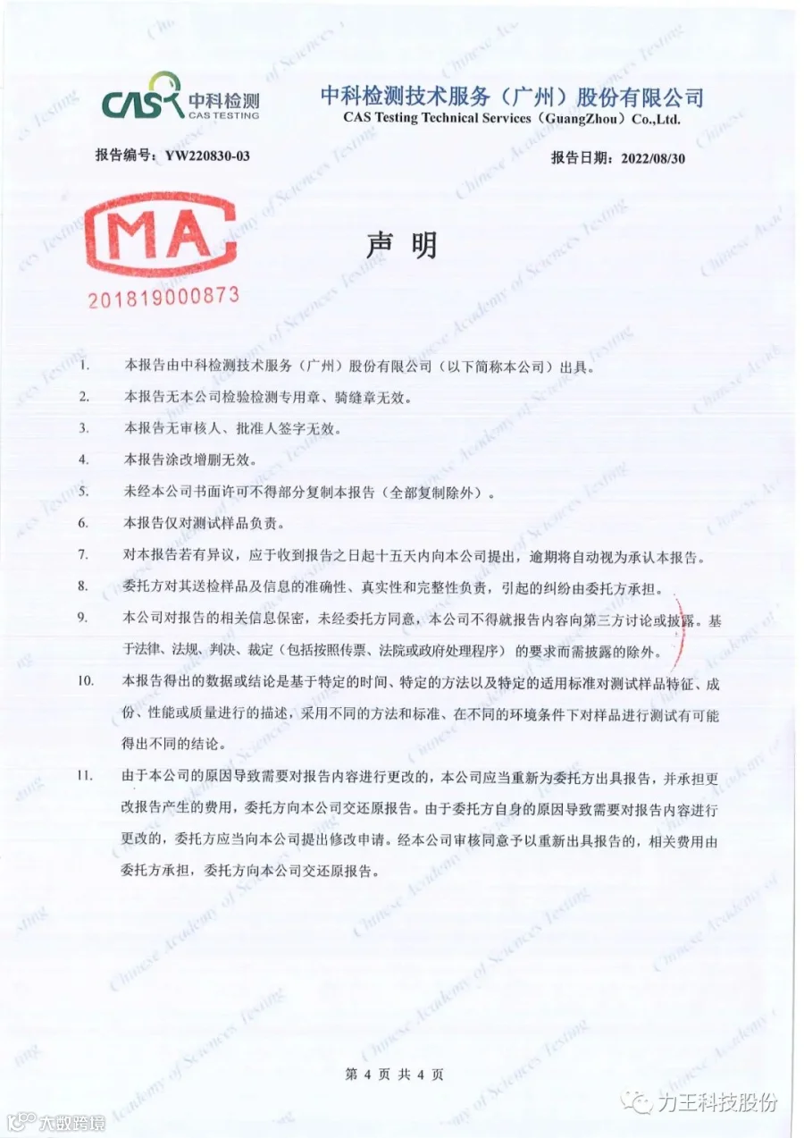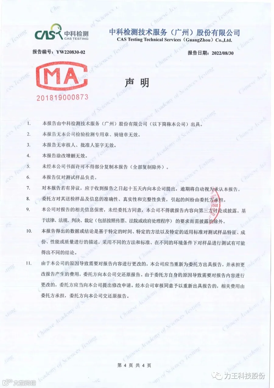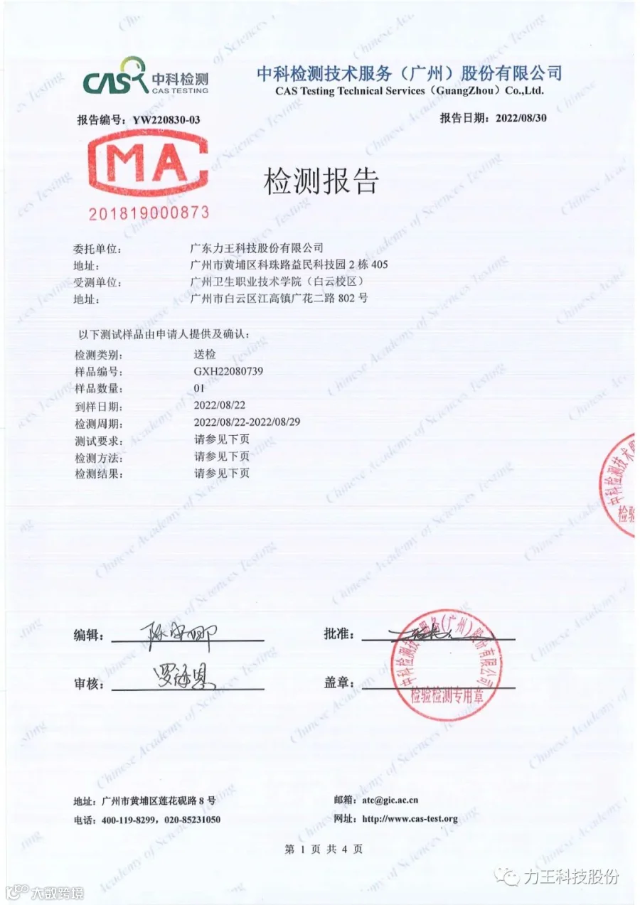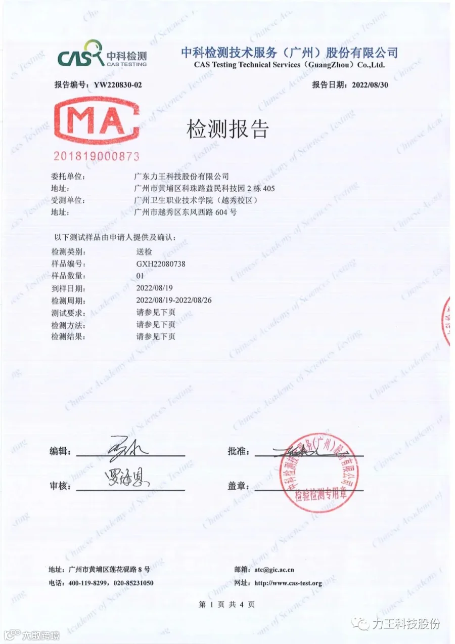 广州卫生职业技术学院饮用水水质检测报告 力王科技股份