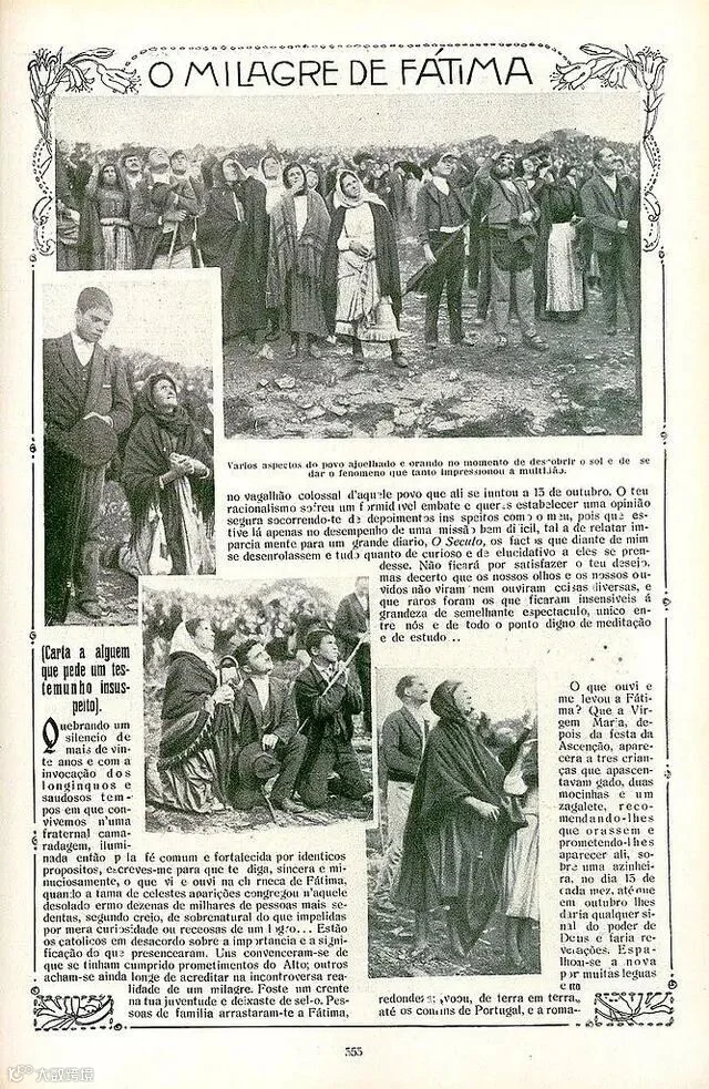 葡萄牙报纸Ilustração Portugueza1917年10月29日版的复制,期待花地玛显现时“太阳奇迹”的人群