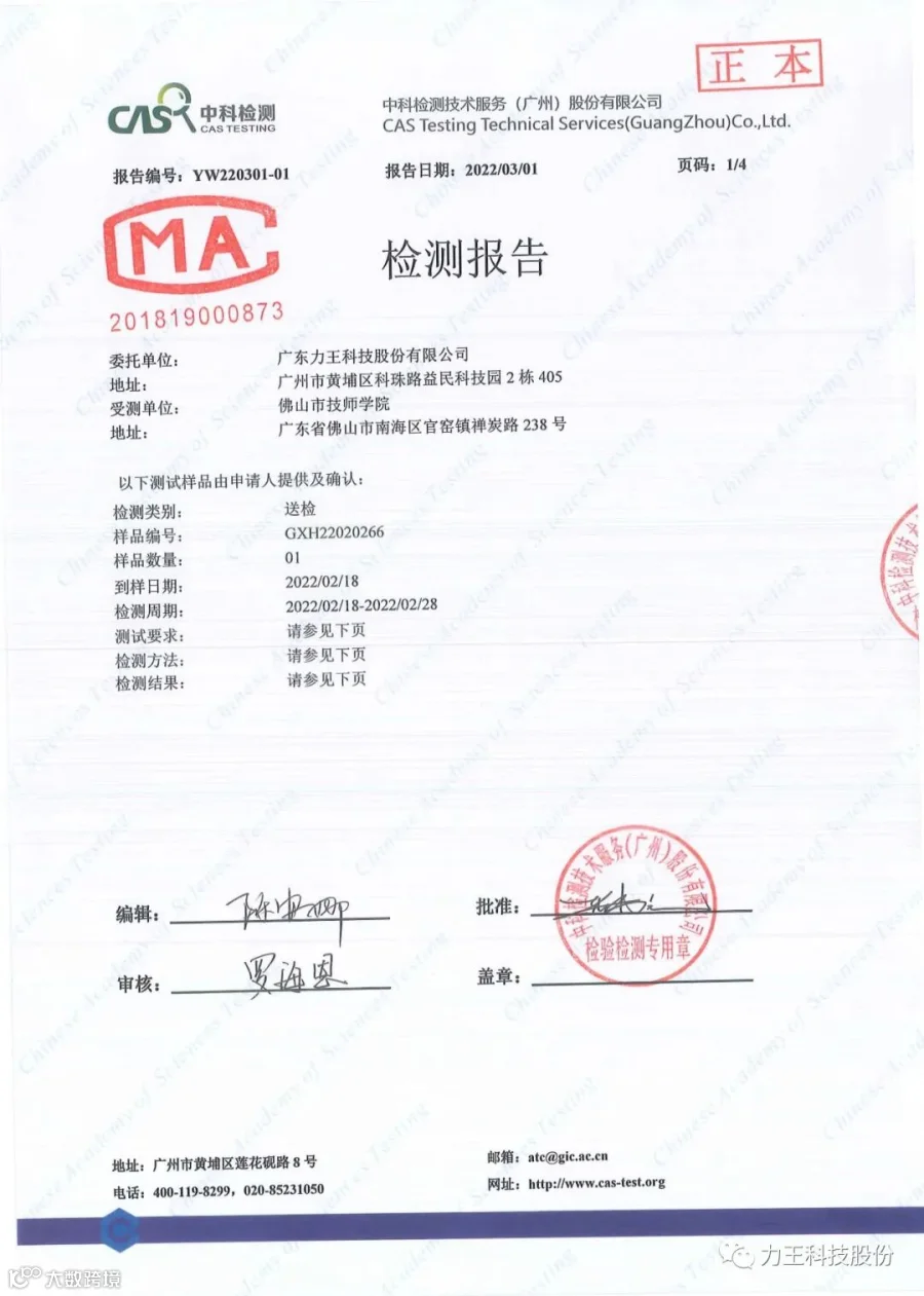 水质检测报告: