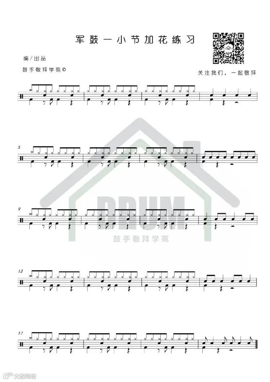 架子鼓从零教学 | 第8期:军鼓一小节加花练习