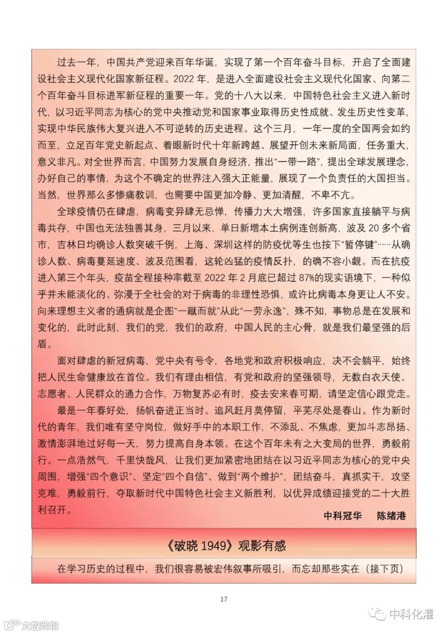 导读:中科化灌季刊2022年第一期