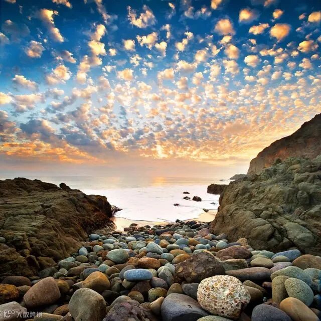 弹好的棉花,飘到天上,成了云;未弹的,掉在地上,成了石头。太阳出来了,把它们染成了斑斓。