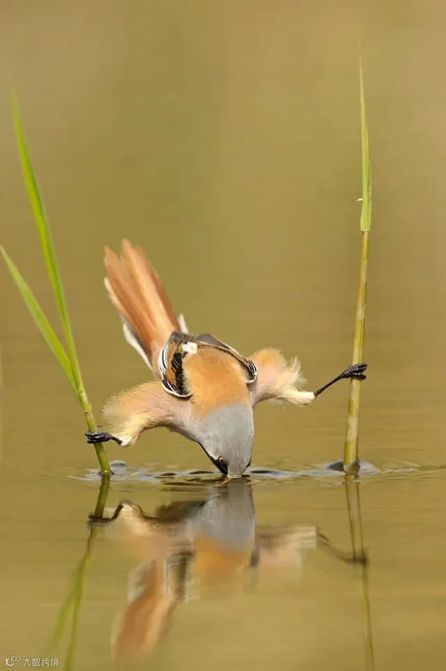 你见过这样喝水的鸟儿吗?一种名为“伯劳”的凶猛鸟类,有"空中屠夫"之称,却生性怕水。摄影:Edwin Kats