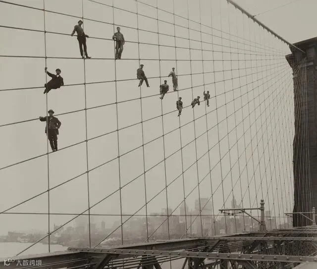 布鲁克林大桥上的油漆工。美国摄影师Eugene de Salignac(1861-1943)摄于1914年10月7日