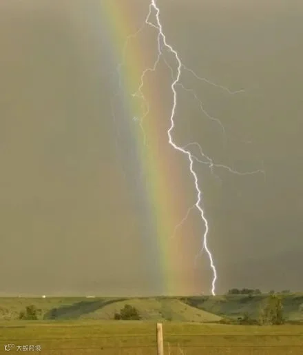 彩虹和闪电交汇,非常难得的瞬间