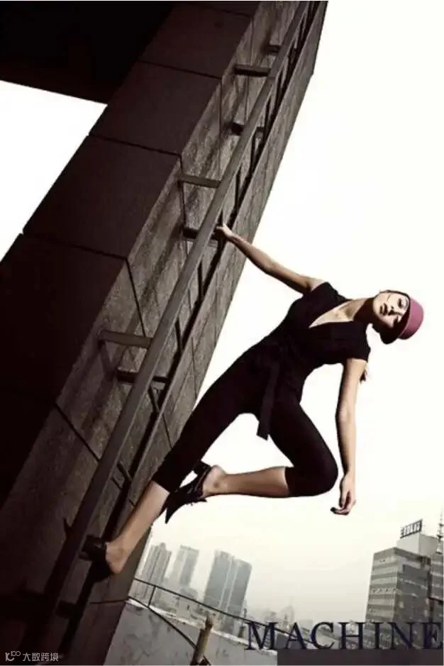 双腿与被靠物离开一段距离,让身体形成夸张拱形,显得时尚、粗狂