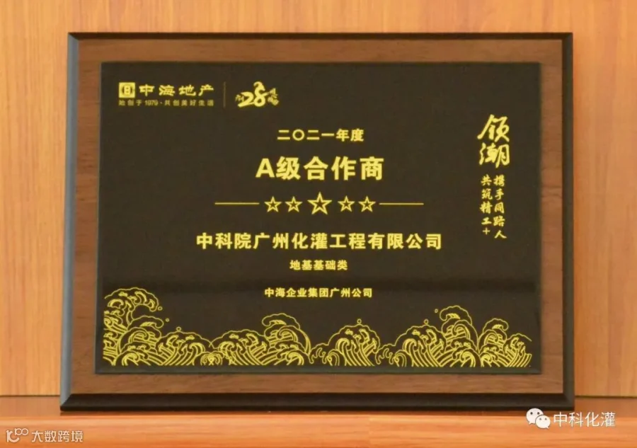 近日,中海地产(中海企业集团)广州公司正式发布《2021年秋季合作商定级结果》,中科院广州化灌工程有限公司(化灌公司)凭借精湛的施工技术及优质的服务,获评地基基础类“2021年度A级合作商”,这是本年度继中海地产广州公司“2021年度攻坚克难奖”后,获得的又一殊荣。
