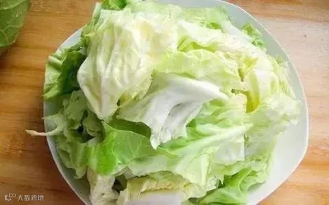 圆白菜最好用手撕,而不用刀切用手把叶片全部拆散,去掉大梗,耐心地撕成大约3厘米见方的块。