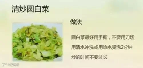 切记,清炒圆白菜过程,不宜炒太久,以免吃起来干,防止各种营养素的流失!