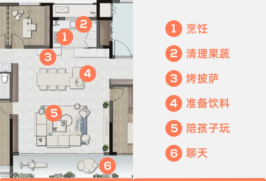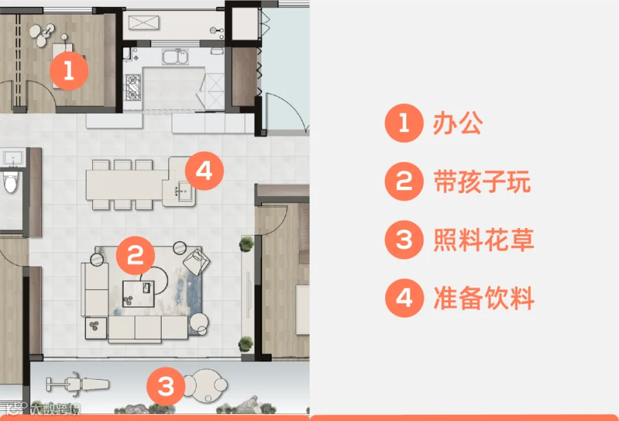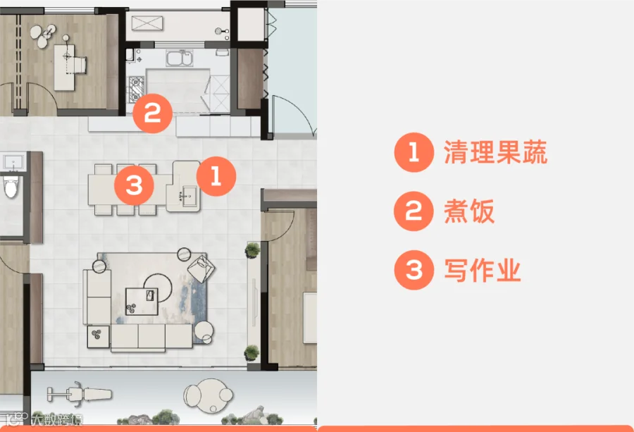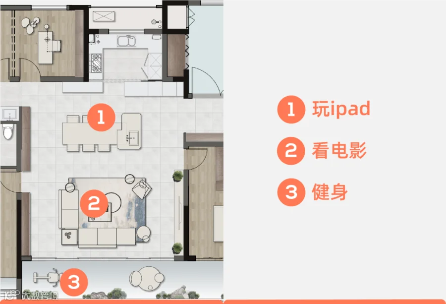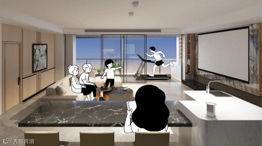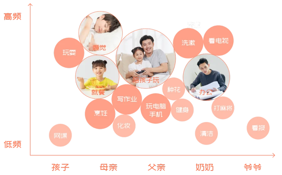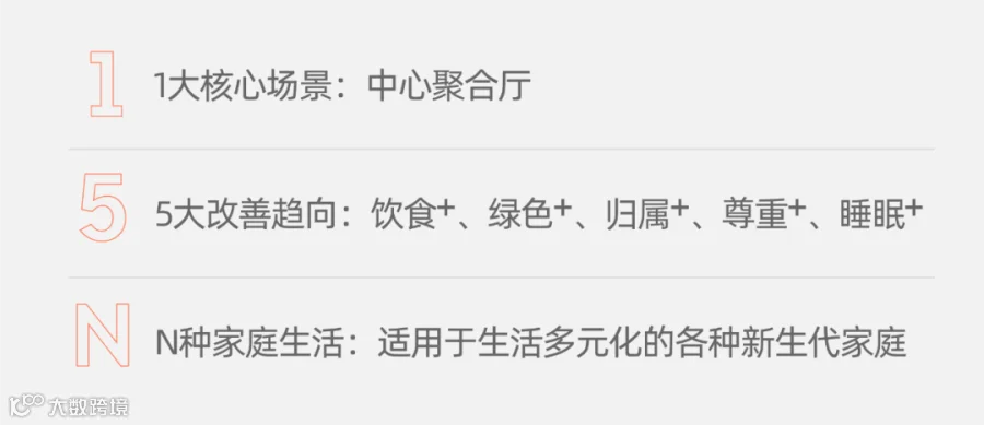 中梁应用场景化设计思路,研究不同家庭户内生活行为,针对新生代的喜好趋向深入分析,寻找产品改善机遇点。