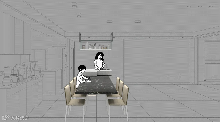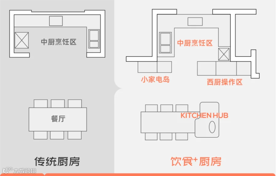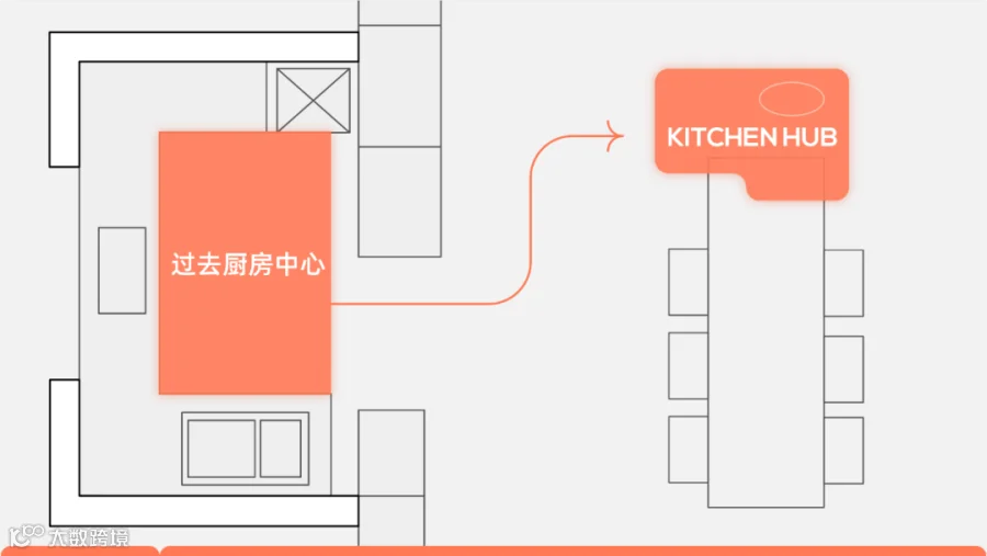 为此,「饮食⁺」厨房推出「Kitchen Hub」,将厨房的中心由过去封闭厨房转移到开放空间,从而让厨房拥有更多情境可能。