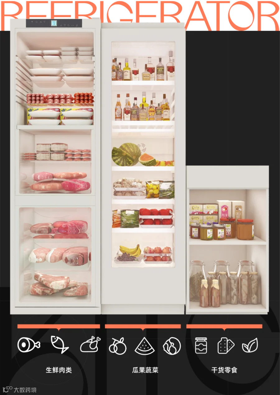 为此,中梁「饮食⁺」厨房提出「三级健康储存」概念,从生鲜冷冻品、饮料及新鲜蔬果到干货储藏,将食材分为三类,分区储藏,防止食物串味,避免交叉污染,保障家庭饮食新鲜健康。