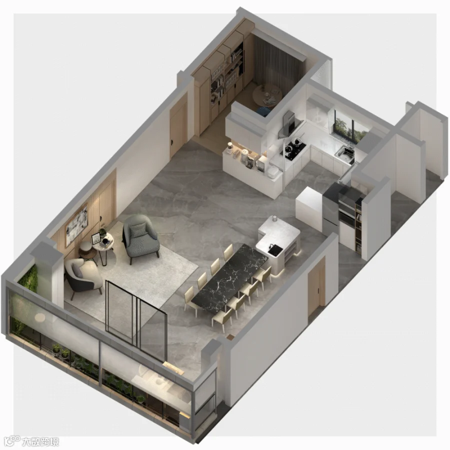 【WEI家】中心聚合厅,为当下新生代人群开放自由、热爱分享的天性而生。采用LDKSG一体化设计,集合五大功能空间,打造家庭中心巨厅。(L-Living Room起居室;D-Dinning Room餐厅;K-Kitchen厨房;S-Study书房;G-Garden花园)