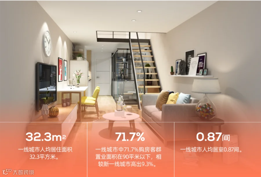 一二线城市家庭的人均居住面积相对较小,疫情期间长期宅家、居家办公,更暴露出居家空间不足的各种问题。