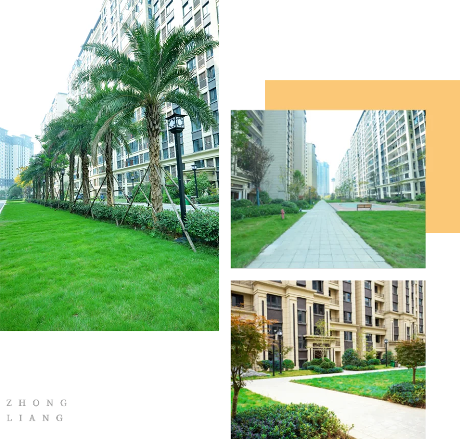 干净舒适的花岗岩地面、两旁繁茂的枝叶