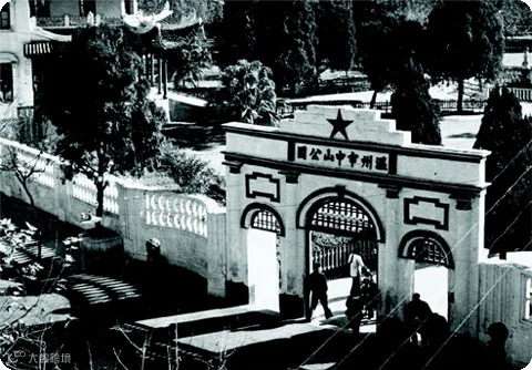 1959年的中山公园是免费开放的。公园为纪念孙中山先生而建,所以中山纪念堂的模样跟现在的几乎没有区别。只是中山公园的门楼几度“变脸”,折射出时代变迁。