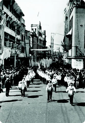 1979年,庆祝第五届全国人大胜利召开的游行队伍经过五马街口,群众欢欣鼓舞。作为温州最著名的一条街,五马街见证了温州许许多多的历史事件。今日的五马街则是温州商业的标签。