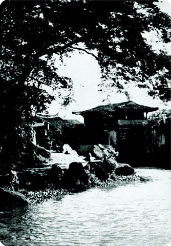 池上楼位于中山公园积谷山西麓,为南朝诗人谢灵运任永嘉郡守时所建造,因其有名句“池塘生春草,园柳变鸣禽”传世,后人遂称该楼为“池上楼”。邵度先生所摄“池上楼”系清代建筑,现已经拆除。今所见“池上楼”为原址仿古重建,方位略有偏差。