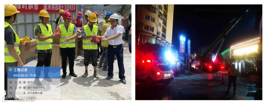 集众人之智,办众人之事。在前期阶段,恩施事业部为了打造示范区更佳体验感,多方协调在不产生额外费用的情况下将示范区前广场部分前移,加之项目位于人流密集、车水马龙之处,城管每晚均会如约打卡项目进行监管;街道办也提出早晚高峰时段工程车辆禁行要求。在这样一个阻力重重的困境下,恩施事业部组织协调专班,合理部署错峰占道;在示范区园林施工阶段,事业部先向相关主管部门报备,并申请警力配合维护秩序,同时向城管部门申请特殊连续作业的夜间施工;在示范区开放的最后冲刺阶段,由于时间紧任务重,施工单位管理人员及现场劳务工人出现一些负面情绪,为稳定“军心”,事业部特举办了一场隆重的“浓情过端午,夏日送清凉”的劳动者慰问活动,取得了良好效果。最终,在全员上下一心的努力之下,恩施事业部在60天的时间里以93.13分的优异成绩实现示范区的完美开放。