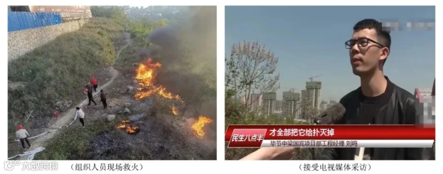 以中梁核心价值观为纲,厚植正能量文化土壤,浸润于员工日常行为中,凝聚起“内核”发展力量。2020年4月26日晚上六点半,毕节中梁国宾府项目红线外20米左右发生了一场火灾,在得到项目总发来的信息后,正在开每日碰头会的Mr.刘立即组织总包管理员进行灭火,上演了一场实实在在的消防演练,通过半个多小时的扑救,才及时控制了火情,避免造成更大的生命财产损失。