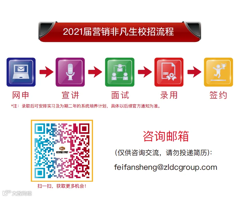 2021届“非凡”计划拟在国内外院校招募230名热爱营销事业、有野心、敢想敢干、为命运而战的优秀应届毕业生。通过2-10年的系统培养,打造成为中梁未来的区域集团总裁、联盟中心执行总裁、区域公司董事长、营销总等一大批高素质经营人才。