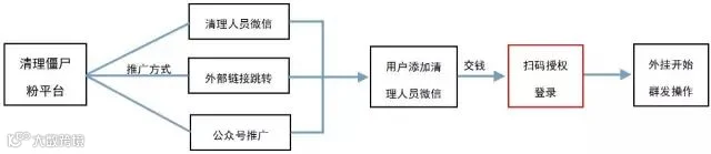 这些所谓的清理僵尸粉工具和技术,利用了微信PC或网页端登录授权和外挂软件进行操作。他们先通过添加清理人员微信、外部链接跳转、公众号推广这三种方式宣传,引诱用户使用。