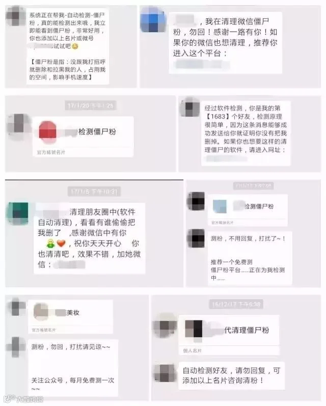所谓“僵尸粉”,只是一些从事恶意营销的人的叫法。在他们眼中,只要有人将他删除、拉黑或屏蔽朋友圈了,那么,都是他的“僵尸粉”……