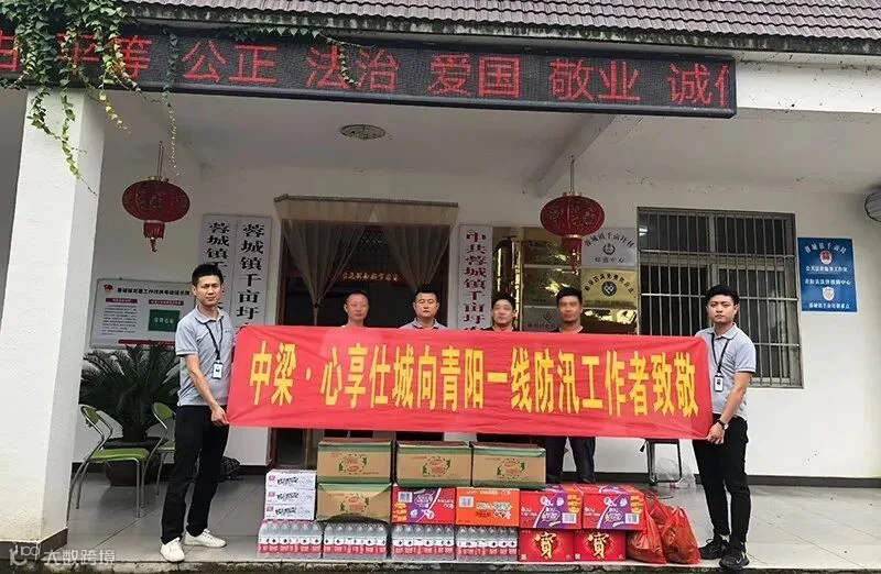 7月12日-13日,在安徽池州青阳县,中梁心享仕城的工作人员走进合心圩、千亩圩、姚家圩三个圩区以及青阳蓝天救援队,为奋战在一线的防汛人员送去凉茶、矿泉水、方便面等清凉慰问,感谢他们为青阳防汛工作所做出的贡献,向奋战在防汛抢险第一线的战士们致敬。