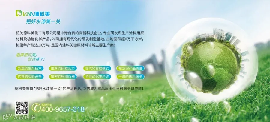 作为专业研发和生产涂料用原材料及功能化学品的厂家, 十余年来,德科美一直专注在技术研发,精于心,智于行,为客户提供全套的水性树脂解决方案。
