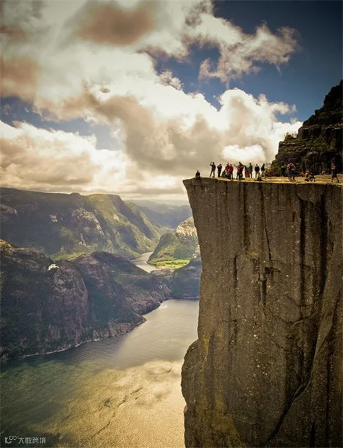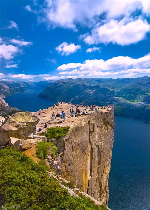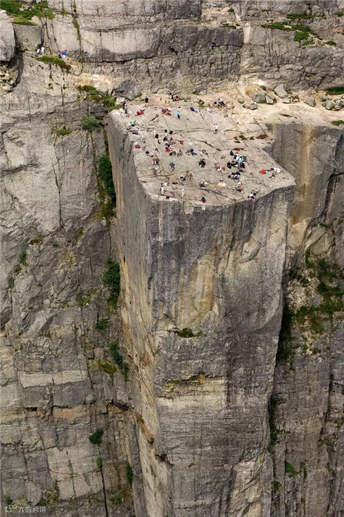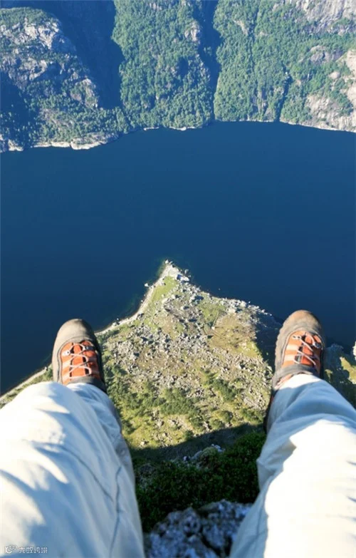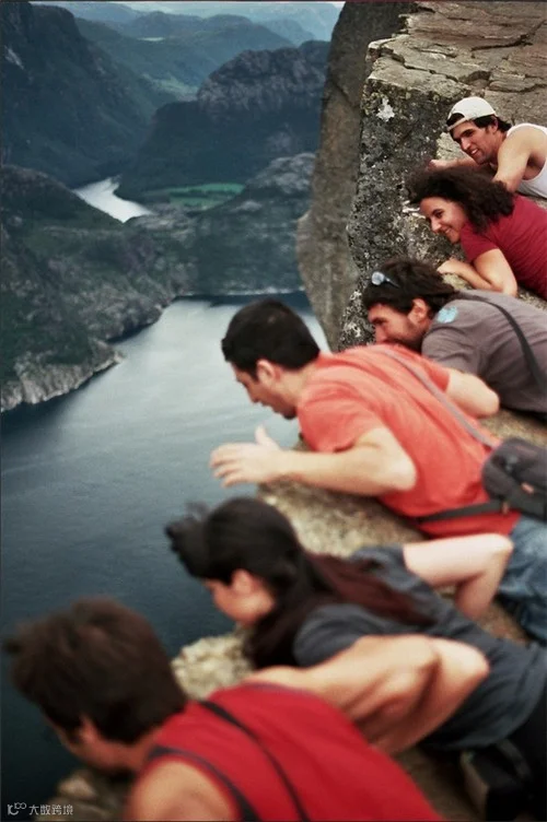 这块石头最惊险的地方就是周围没有任何保护,而且下面峡湾的蒸汽和云雾经常弥漫到石头上面,所以有时候根本就看不到下面的情况。如果天气晴朗,能看到下面反而更令人眩晕,石头对面就是一个瀑布,下面的风绝对能把人吹的摇摇欲坠。所以即使是胆子大的小编站在上面也还是比较紧张的。看到图片里的兄弟,还是相当佩服的。有恐高症的朋友千万不要尝试,这里据说死过人的。