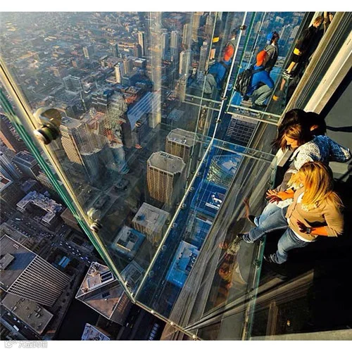 芝加哥西尔斯大厦的运营者突发奇想,在103层处设置了4个玻璃为底的盒子结构,名叫“Ledge”(悬崖边的突出物)。