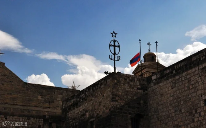 整个教堂的外观造型,看上去颇像一座中世纪的城堡,朴素无华,坚实牢固。要想进入教堂,先得弯腰曲背,将头尽可能地低下,方能通过一个仅有1.2米高的门洞。