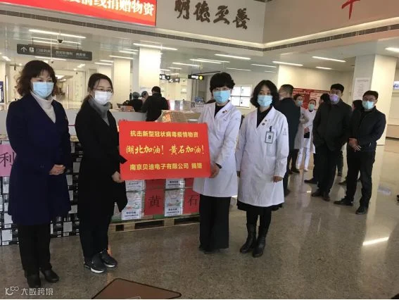 面对疫情,南京贝迪电子有限公司积极响应江宁区委区政府的号召,在切实做好企业自身疫情防控工作,实现有序复工的同时,积极践行社会责任。2月26日,作为江宁高新区商会联合商会副会长单位的南京贝迪与友好合作商业会员企业金佰利(中国)有限公司、园区妇联一起参加了向江苏省对口支援的湖北省黄石市的物资捐赠仪式,仪式上,贝迪捐赠了85箱出门裤;随后,在2月28日又通过黄石市市政协向黄石市捐赠了200副护目镜、200套防护镜,为在防控疫情一线的医务工作者和志愿者提供后勤保障,为抗击新冠肺炎疫情贡献力量。