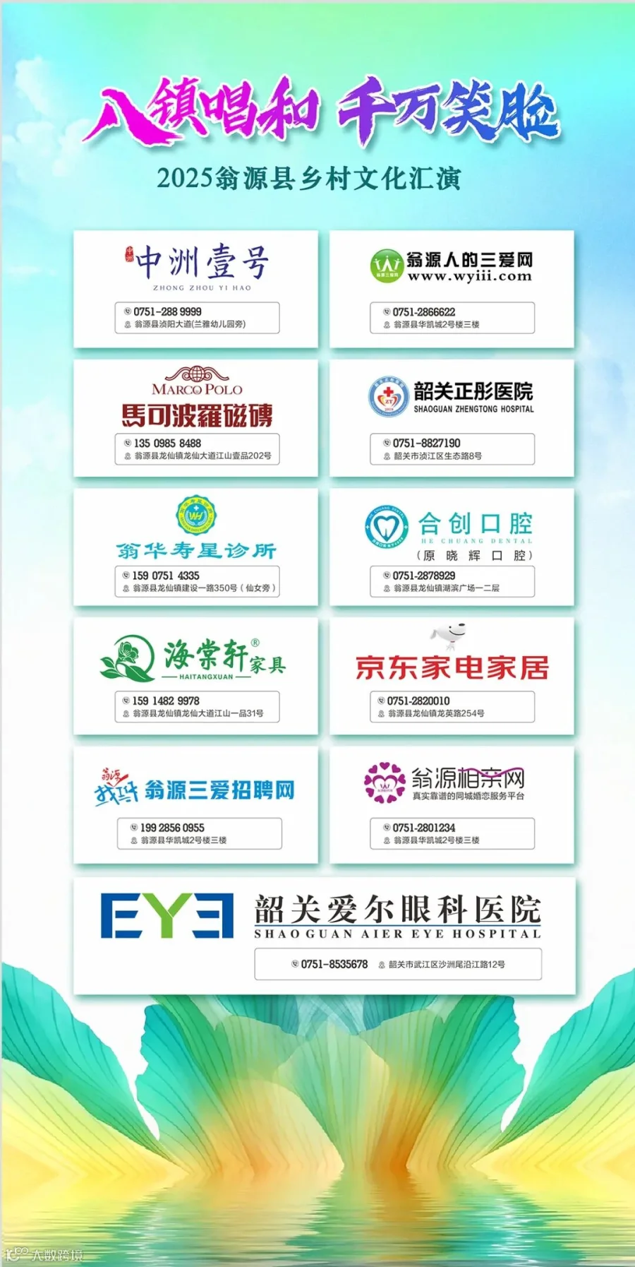 现场还有中洲壹号、韶关爱尔眼科、韶关正彤医院/翁华寿星诊所、合创口腔、马可波罗瓷砖等多位赞助商商家的参与和支持,在这里传递着支持乡村文化的坚实力量。
