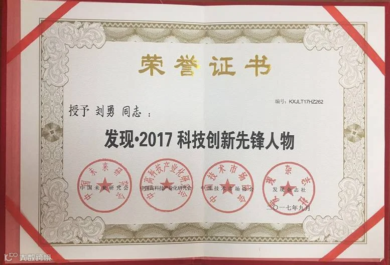 授予董事长刘勇“发现•2017科技创新先锋人物”荣誉称号