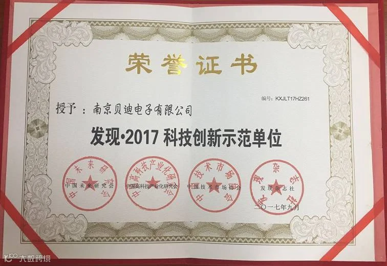 授予贝迪电子“发现•2017科技创新示范单位”