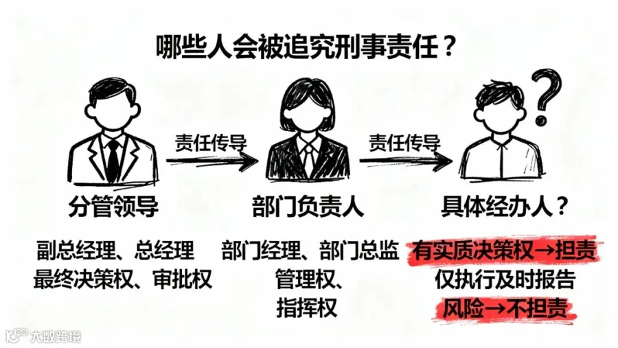 主要的追责对象,包括分管领导(副总经理、总经理,对业务有最终决策权、审批权的),部门负责人(业务部门经理、部门总监,对具体业务有管理权、指挥权的),还有具体经办人(业务员,如果他对具体业务有实质决策权的)。