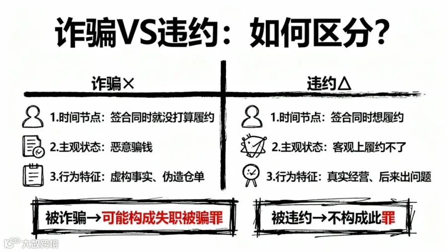 被诈骗才可能构成这个罪,被违约不构成这个罪;但事前分不清诈骗还是违约,所以必须把该做的都做到位;做到位了,即使是诈骗你也能证明自己不是"严重不负责任";做不到位,即使是违约你也可能承担其他责任。