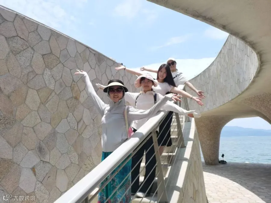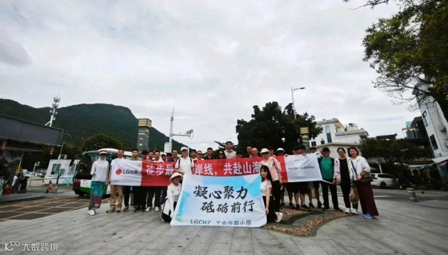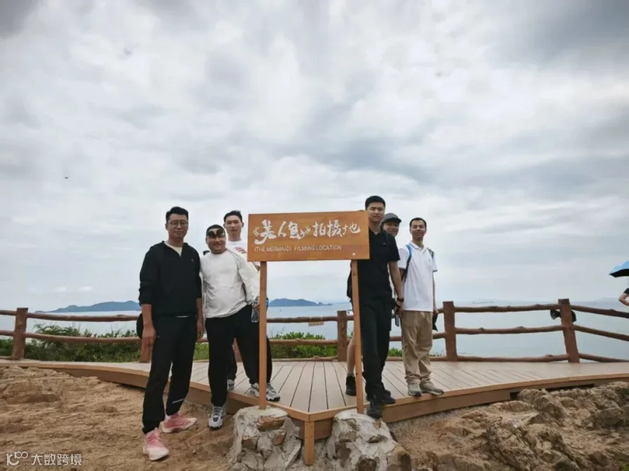 从杨梅坑停车场下车,大家步行至鹿嘴山庄入口,沿着海岸线徒步前行,途经人鱼洞,迎客松,悬崖餐厅,最后返回到山庄入口。杨梅坑风景宜人,碧波荡漾的海面像块渐变蓝宝石,远处七星岛链犹如仙人撒落的翡翠,鹿嘴山庄的红瓦白墙在凤凰木的掩映中若隐若现……,当站在峭壁之巅时,电影《美人鱼》取景地豁然眼前——浪涛在嶙峋的海蚀洞中轰鸣,飞沫在阳光下折射出彩虹,仿佛真有鲛人在深蓝处摆尾。途中休憩,技术服务Part高级工程师袁伟即兴表演笛子独奏,一曲曲悠扬的笛声为徒步增添了诗意韵律。