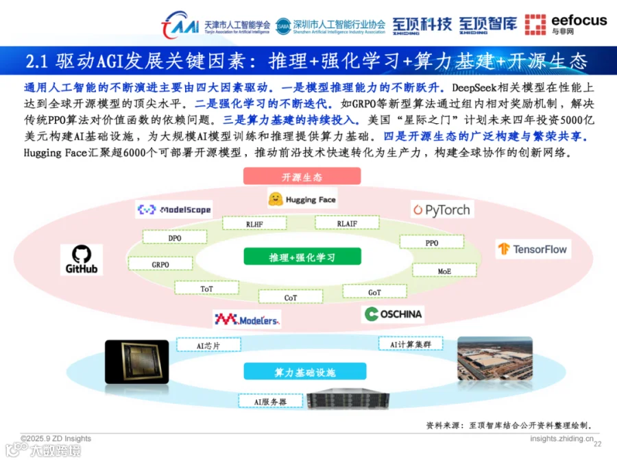 通用人工智能的突破并非单点技术进步,而是 “推理能力跃升 + 强化学习迭代 + 算力基建升级 + 开源生态繁荣” 的协同结果。
