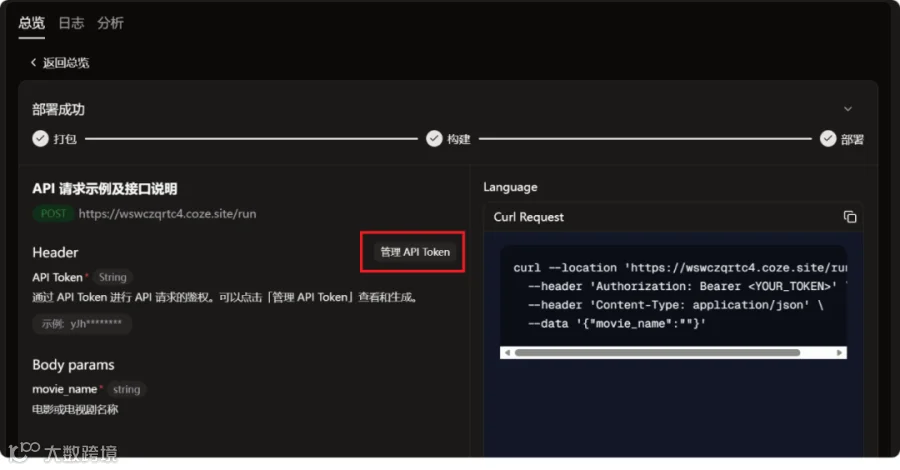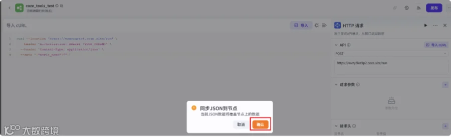 导入扣子编程生成的Cur Request,参考红框中的内容设置