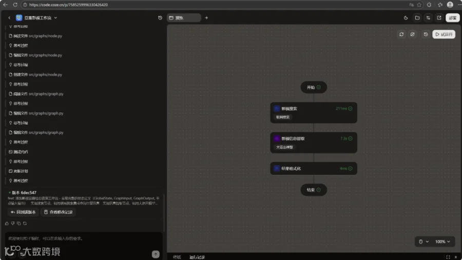 点击右上角的"试运行",测试下工作流,测试结果OK